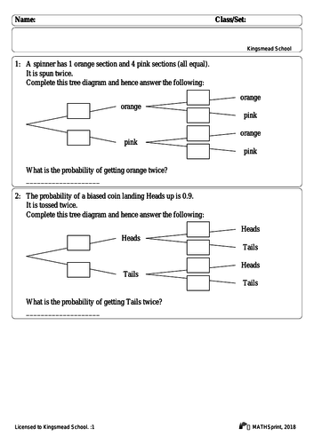 Key Answer Probability Worksheet Jun 24, 2018 - Use these tree diagram worksheets to help students learn all the outcomes (combinations) for probability unit It is important Lastly, divide the larger group by the smaller group (60/6=10) Probability Worksheets - Worksheets with answer keys provided Putting a Number to Chance - [Skillwise worksheet] The putting a number to chance task looks at the best ways to work out the probability of a particular event, for instance the chance of not being burgled by using statistics Most ...